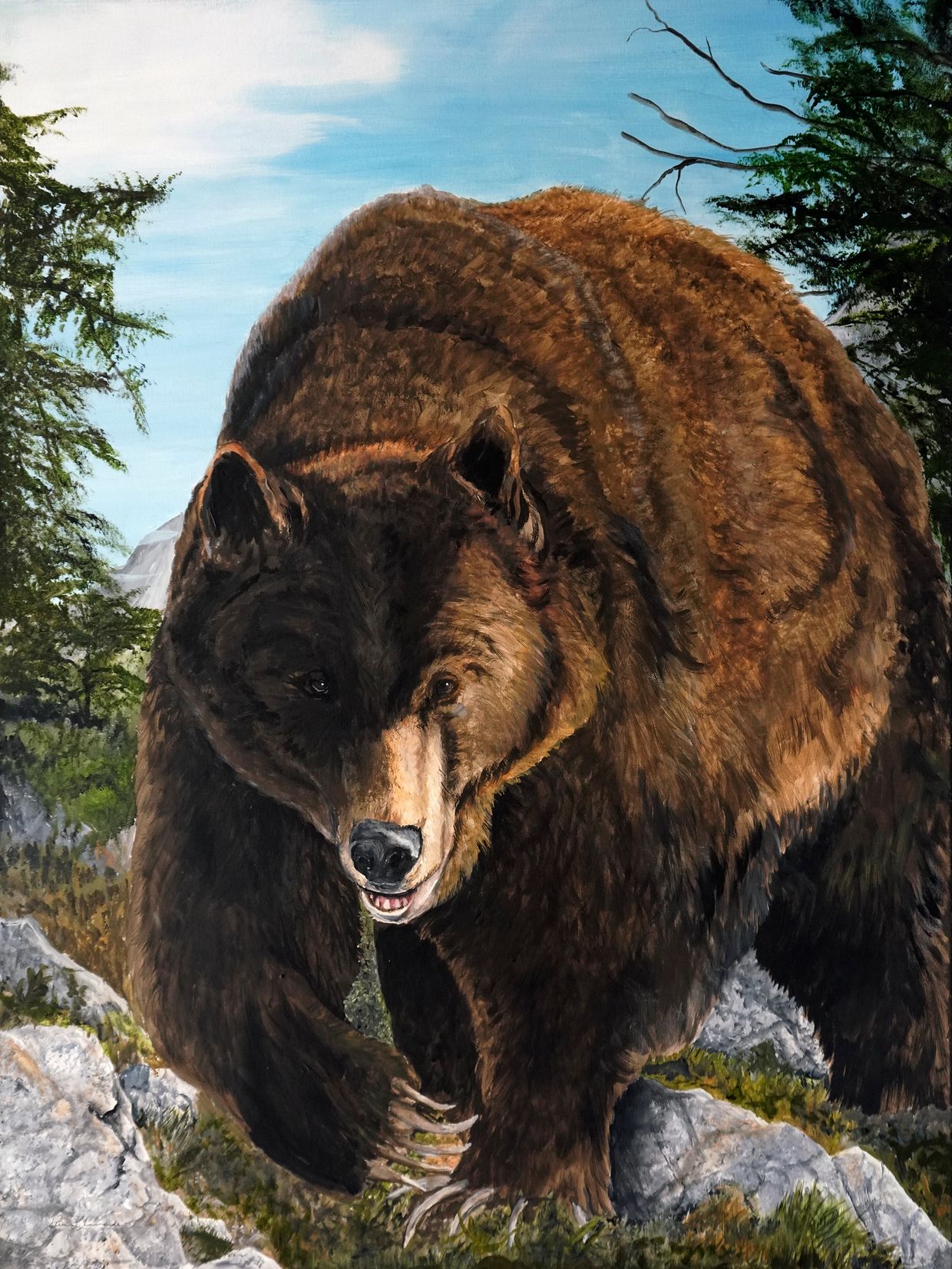 This is the largest painting I have ever done. I wanted to create a piece that had the same impact that the grizzly occupies in our western psyche.